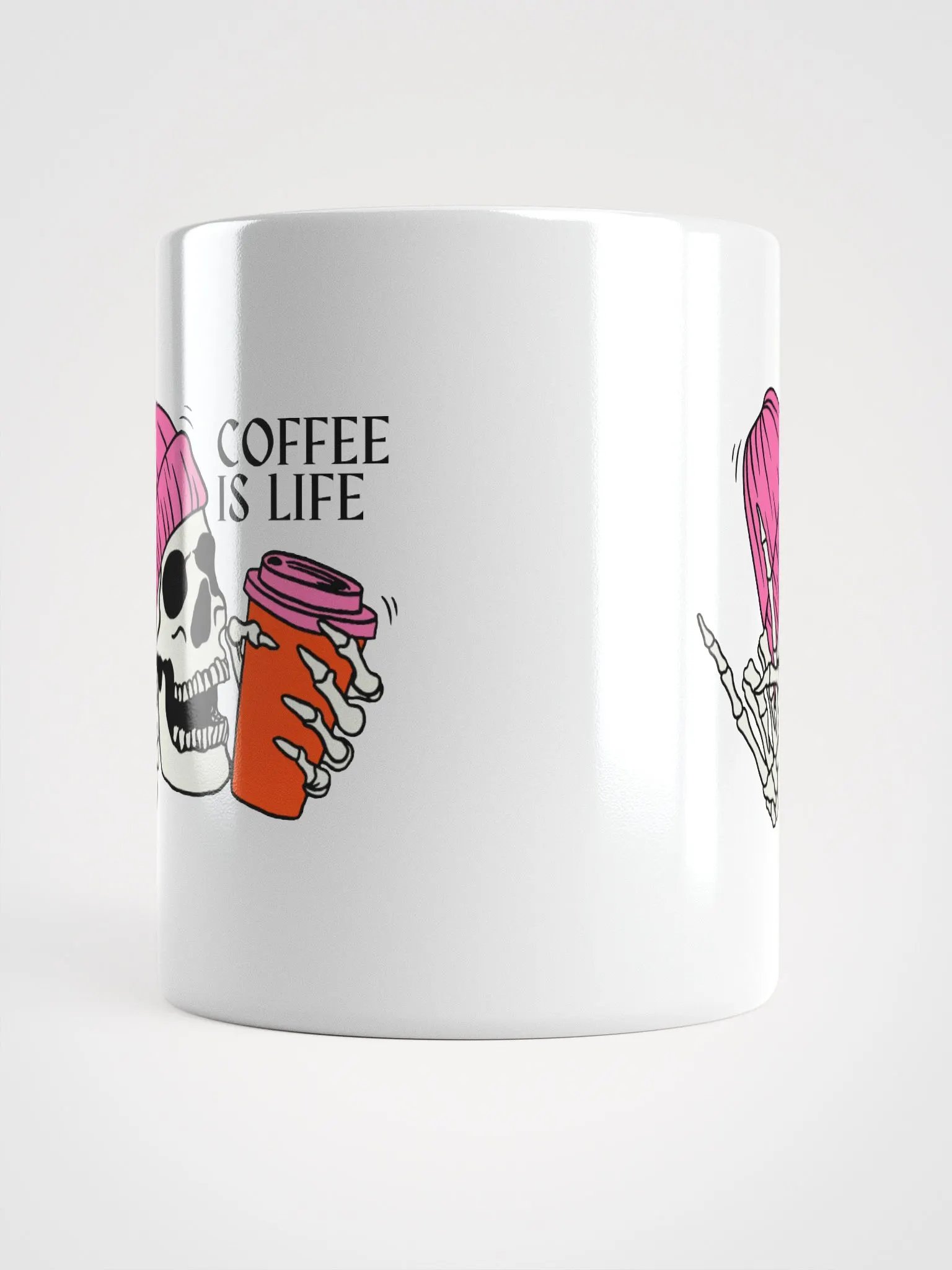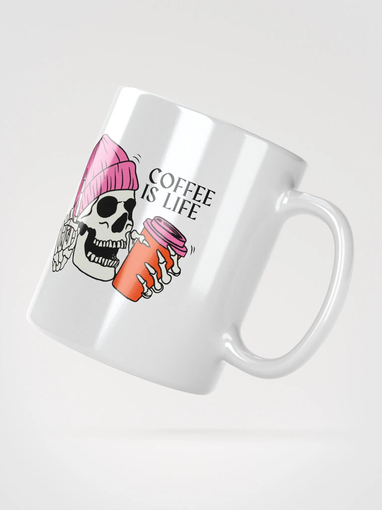 "COFFEE is LIFE and SKULL" Design White Glossy Mug