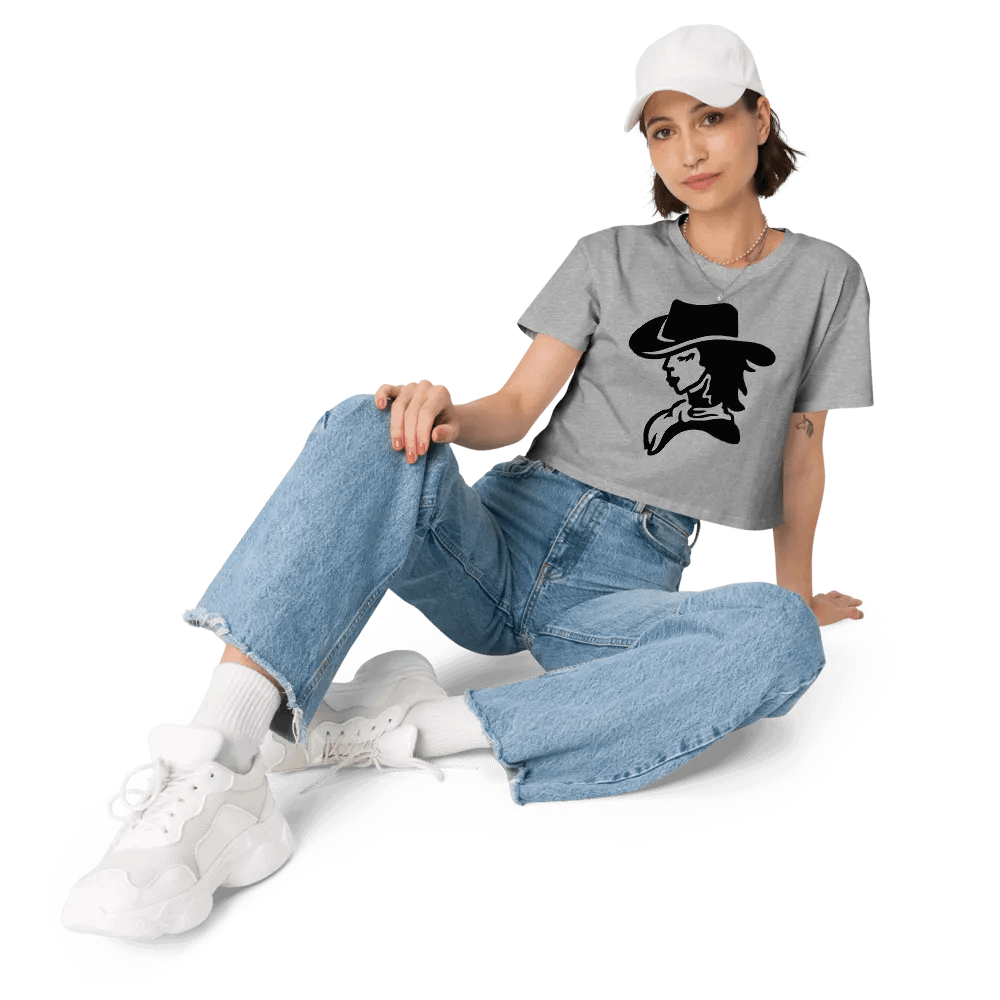 "Cowgirl" Design: The Women's Crop Top is straightforward and timeless. Crafted from 100% combed cotton, this shirt offers exceptional softness and enhanced durability compared to standard cotton shirts.